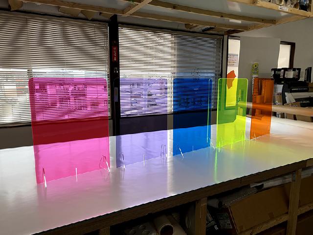 コロナ対策・飛沫感染予防の為のアクリルパーテーションなども製作しております。その他、暖簾や横断幕、オリジナル提灯からアクリル造形まで幅広く製作可能です。